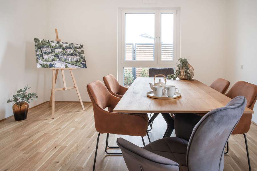 Unser Bauvorhaben green v Viernheim erreicht die Klassifizierung Klimafreundliches Wohngebäude mit QNG und wird mit dem besonderen Förderprogramm 297/298 der KfW-Bankengruppe unterstützt. Es qualifiziert sich dadurch für ein außergewöhnlich gutes Zinsprogramm, das erhebliche Kosteneinsparungen für Sie als Käufer mit sich bringt. Beim Erwerb einer Erstimmobilie können Sie dank"Hessengeld" bei der Grunderwerbssteuer sparen. Der erste Bauabschnitt ist abgeschlossen. Wir bieten in zwei Gebäuden einen attraktiven Wohnungsmix mit 2-4 Zimmer Eigentumswohnungen und Wohnungsgrößen von 79m² bis 113m². Eine gut durchdachte Raumaufteilung und praktische Stellflächen bietenIhnen hervorragende Möglichkeiten, sich individuell in Ihren Räumen zu verwirklichen. Alle Wohnungen erhalten Balkone oder Gartenanteile mit Südwest-Ausrichtung, die zum Verweilen bis in die Abendstunden einladen. Alle Häuser werden durch eine gemeinsame Tiefgarage verbunden und bieten ausreichend Platz für 112 PKW-Stellplätze. In den Untergeschossen befinden sich die Wohnungskeller und Technikräume. Die Müllräume sowie die Fahrradstellplätze für Besucher sind gut erreichbar in den Außenanlagen, nahe den Hauseingängen, platziert.