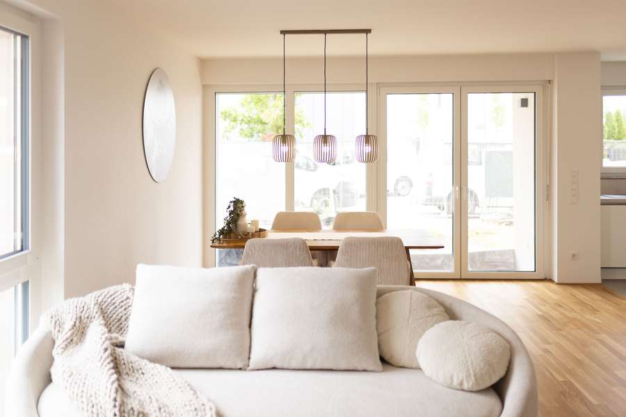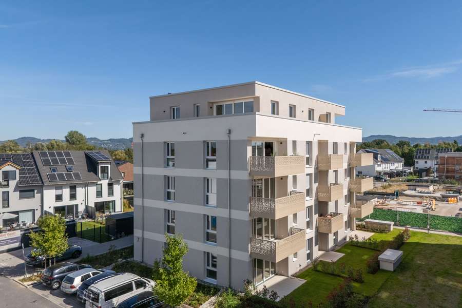 Unser Bauvorhaben green v Viernheim erreicht die Klassifizierung Klimafreundliches Wohngebäude mit QNG und wird mit dem besonderen Förderprogramm 297/298 der KfW-Bankengruppe unterstützt. Es qualifiziert sich dadurch für ein außergewöhnlich gutes Zinsprogramm, das erhebliche Kosteneinsparungen für Sie als Käufer mit sich bringt. Beim Erwerb einer Erstimmobilie können Sie dank"Hessengeld" bei der Grunderwerbssteuer sparen. Der erste Bauabschnitt ist abgeschlossen. Wir bieten in zwei Gebäuden einen attraktiven Wohnungsmix mit 2-4 Zimmer Eigentumswohnungen und Wohnungsgrößen von 79m² bis 113m². Eine gut durchdachte Raumaufteilung und praktische Stellflächen bietenIhnen hervorragende Möglichkeiten, sich individuell in Ihren Räumen zu verwirklichen. Alle Wohnungen erhalten Balkone oder Gartenanteile mit Südwest-Ausrichtung, die zum Verweilen bis in die Abendstunden einladen. Alle Häuser werden durch eine gemeinsame Tiefgarage verbunden und bieten ausreichend Platz für 112 PKW-Stellplätze. In den Untergeschossen befinden sich die Wohnungskeller und Technikräume. Die Müllräume sowie die Fahrradstellplätze für Besucher sind gut erreichbar in den Außenanlagen, nahe den Hauseingängen, platziert.